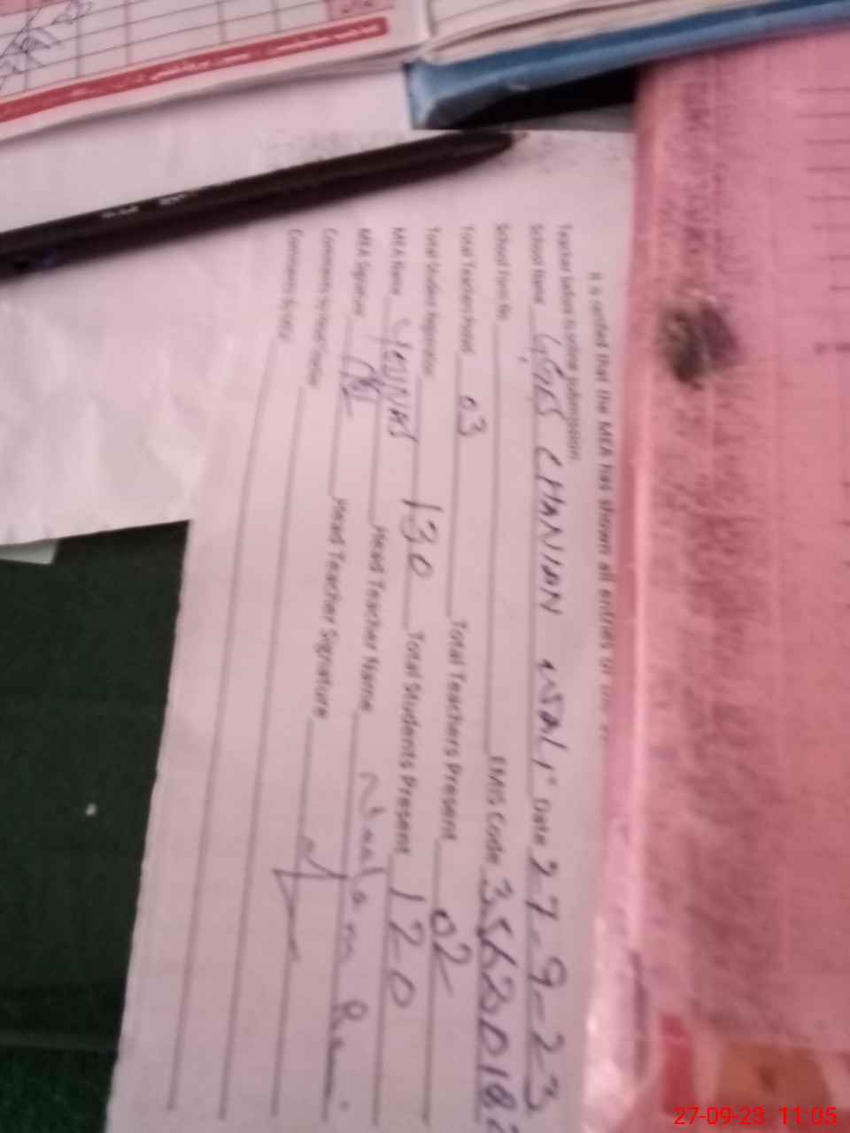 | Attendance Register | Head Teacher | MEA with School | Visit Proof |