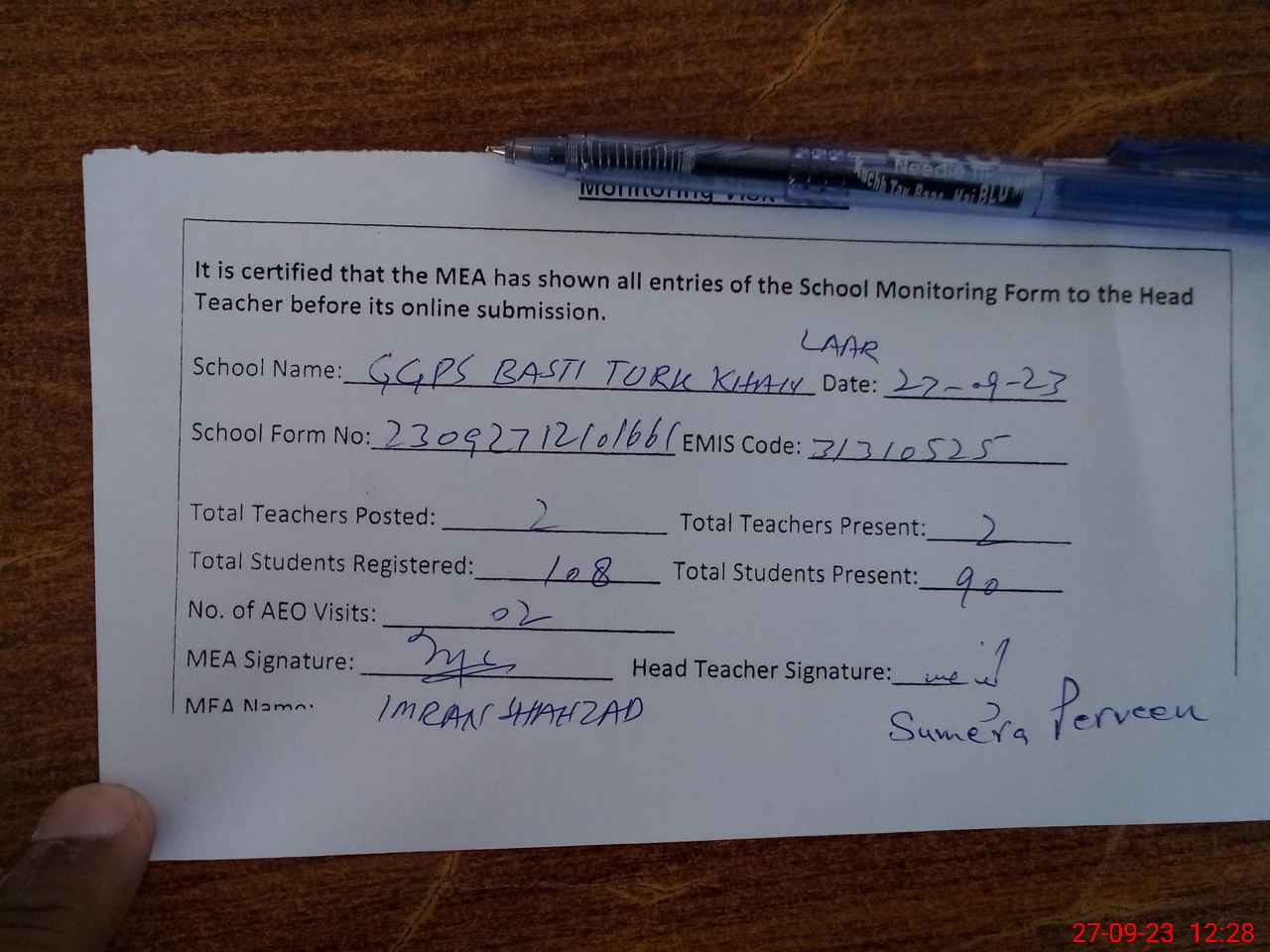 | EMIS Code: 31310525 | Name of School: GGPS BASTI TURK KHAN LAAR | |||