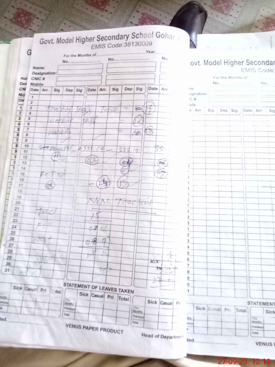 | 38**** | Ab**** Gh**** | 10 | 1 | 0 | 0 | 0 | 0 | 0 | 0 | 0 | 0 | 0 | Casual |