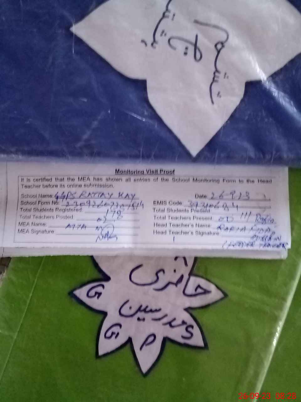 | Attendance Register | Head Teacher | MEA with School | Visit Proof |