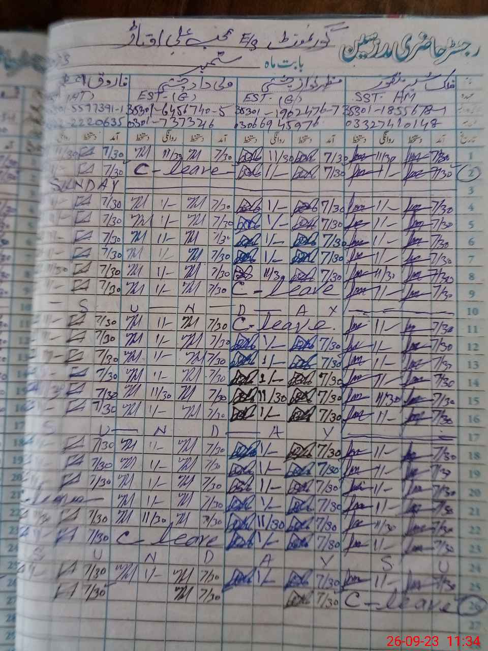 | Name: FA**** SH**** MA**** Designation: (School Headmaster's/Headmistress's) S.S.T.(Arts) Phone/Cell Number: 03**** |