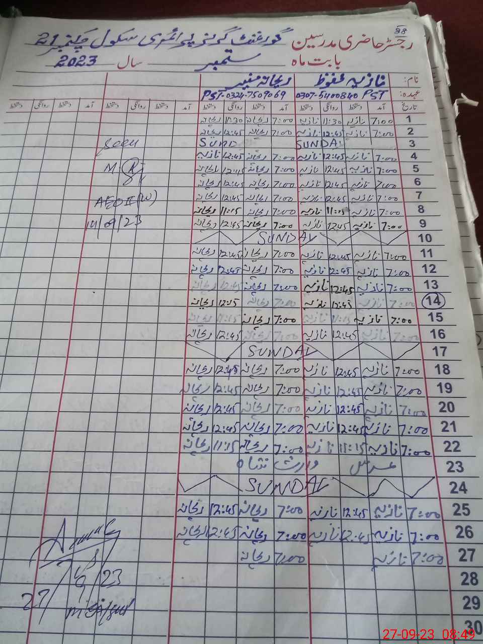 | Name: Na**** Me**** Designation: (School Headmaster's/Headmistress's) ESE Arts Phone/Cell Number: 03**** |