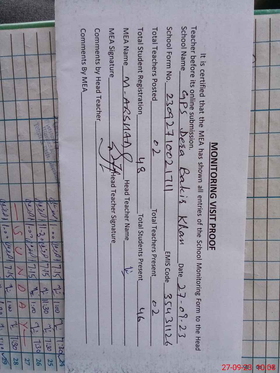 | EMIS Code: 35431126 | Name of School: GPS DERA BAKIR KHAN | |||