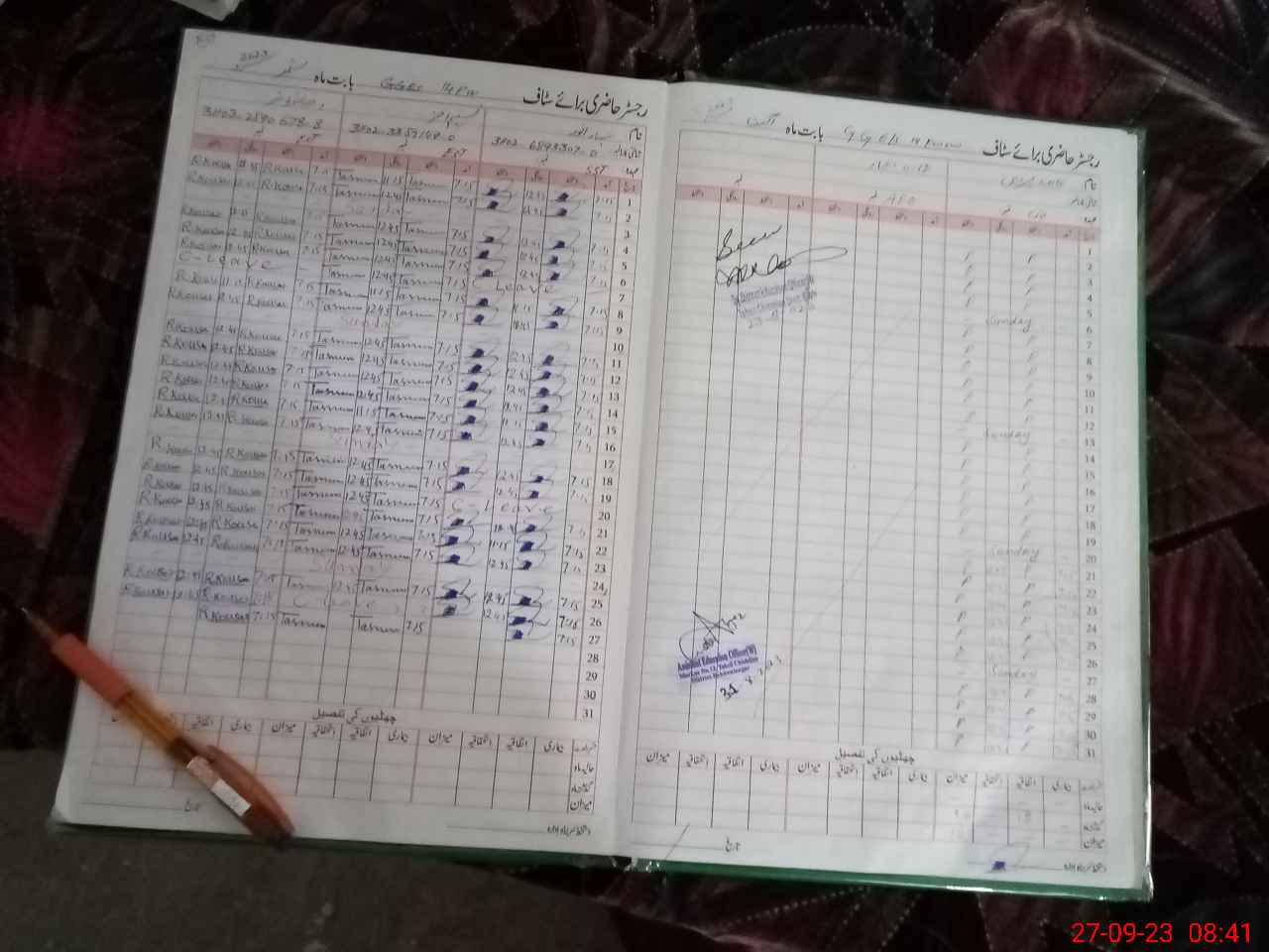 | CNIC | Full Name | Designation | R/C | Absence During Last Calender Month |