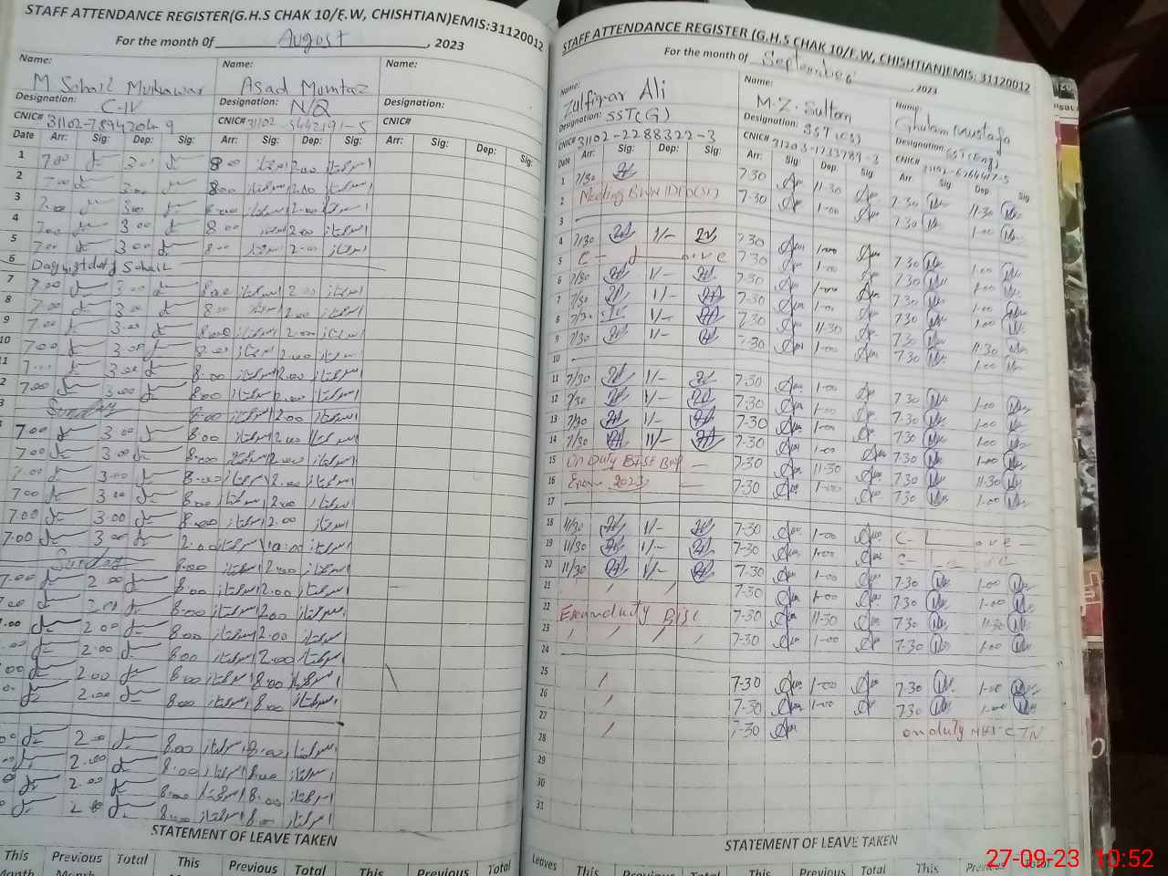 | 31**** | Mu**** Ta**** Kh**** | 1 | 0 | 0 | 0 | 0 | 0 | 0 | 0 | 0 | 0 | Exam Duty | |