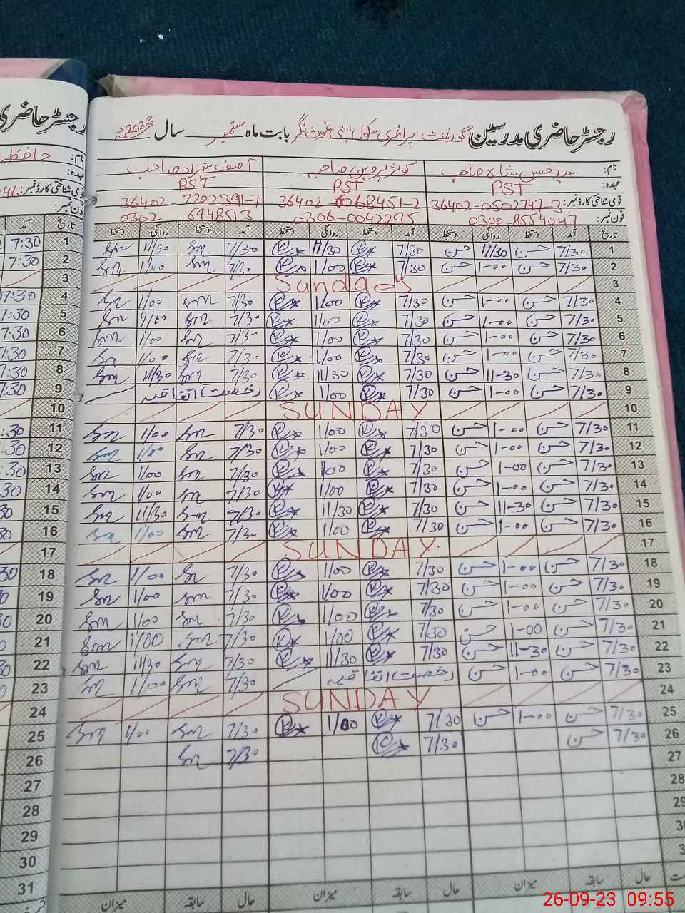 | Name: SY**** HA**** SH**** Designation: (School Headmaster's/Headmistress's) PST Phone/Cell Number: 03**** |