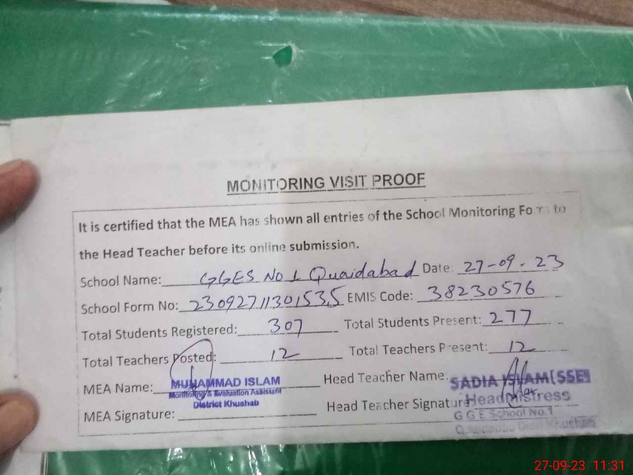 | EMIS Code: 38230576 | Name of School: GGES NO. 1 QUAIDABAD | |||