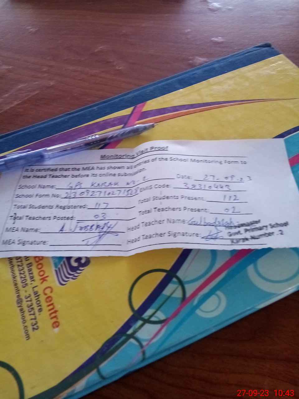 | Attendance Register | Head Teacher | MEA with School | Visit Proof |