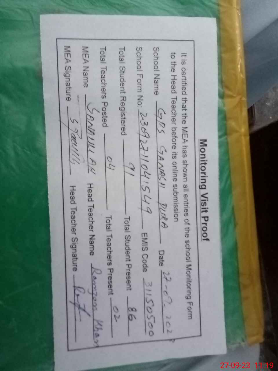 | EMIS Code: 31150500 | Name of School: GPS GANASH PURA MINCHINABAD | |||