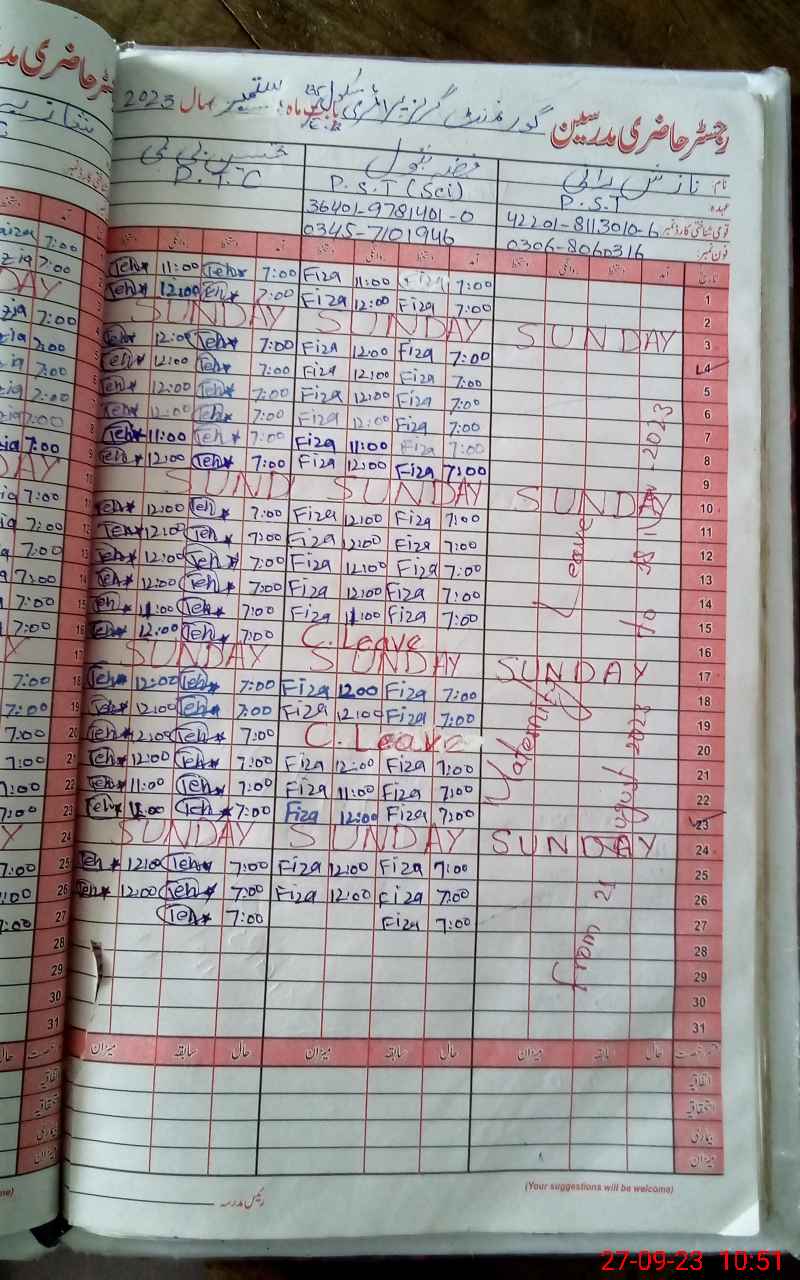 | Name: NA**** RA**** Designation: (School Headmaster's/Headmistress's) PST Phone/Cell Number: 03**** |