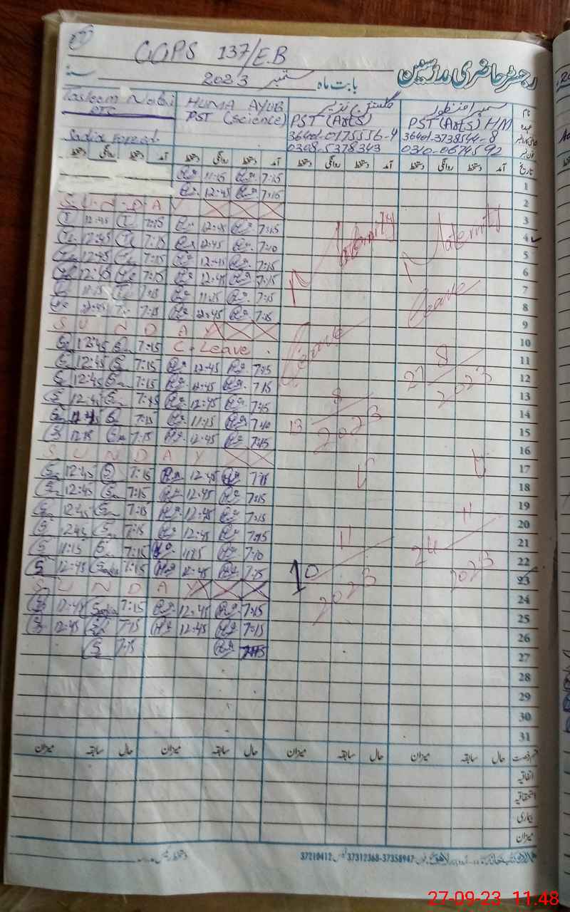 | Name: SU**** MA**** Designation: (School Headmaster's/Headmistress's) PST Phone/Cell Number: 03**** |