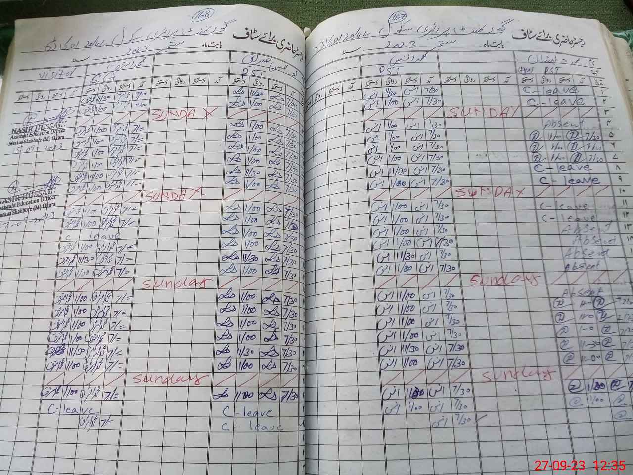 | CNIC | Full Name | Designation | R/C | Absence During Last Calender Month |