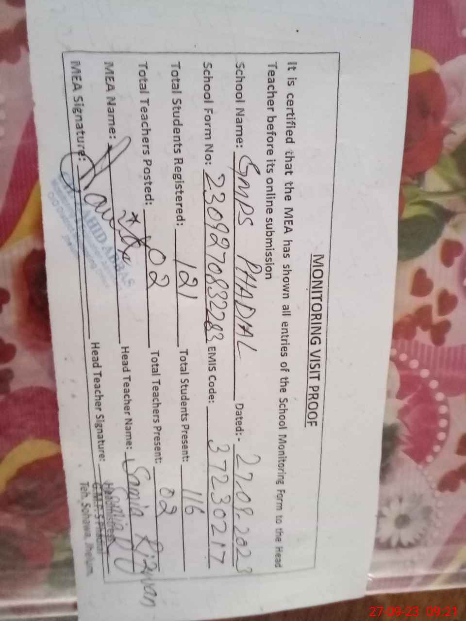 | EMIS Code: 37230217 | Name of School: GMPS PHADIAL | |||