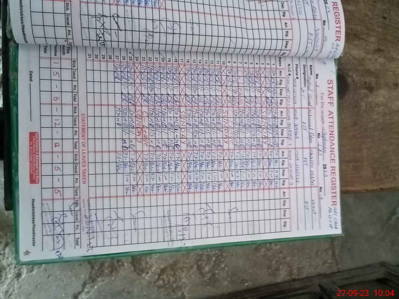 | Name: MA**** AH**** Designation: (School Headmaster's/Headmistress's) PST/PTC/JV Phone/Cell Number: 03**** |