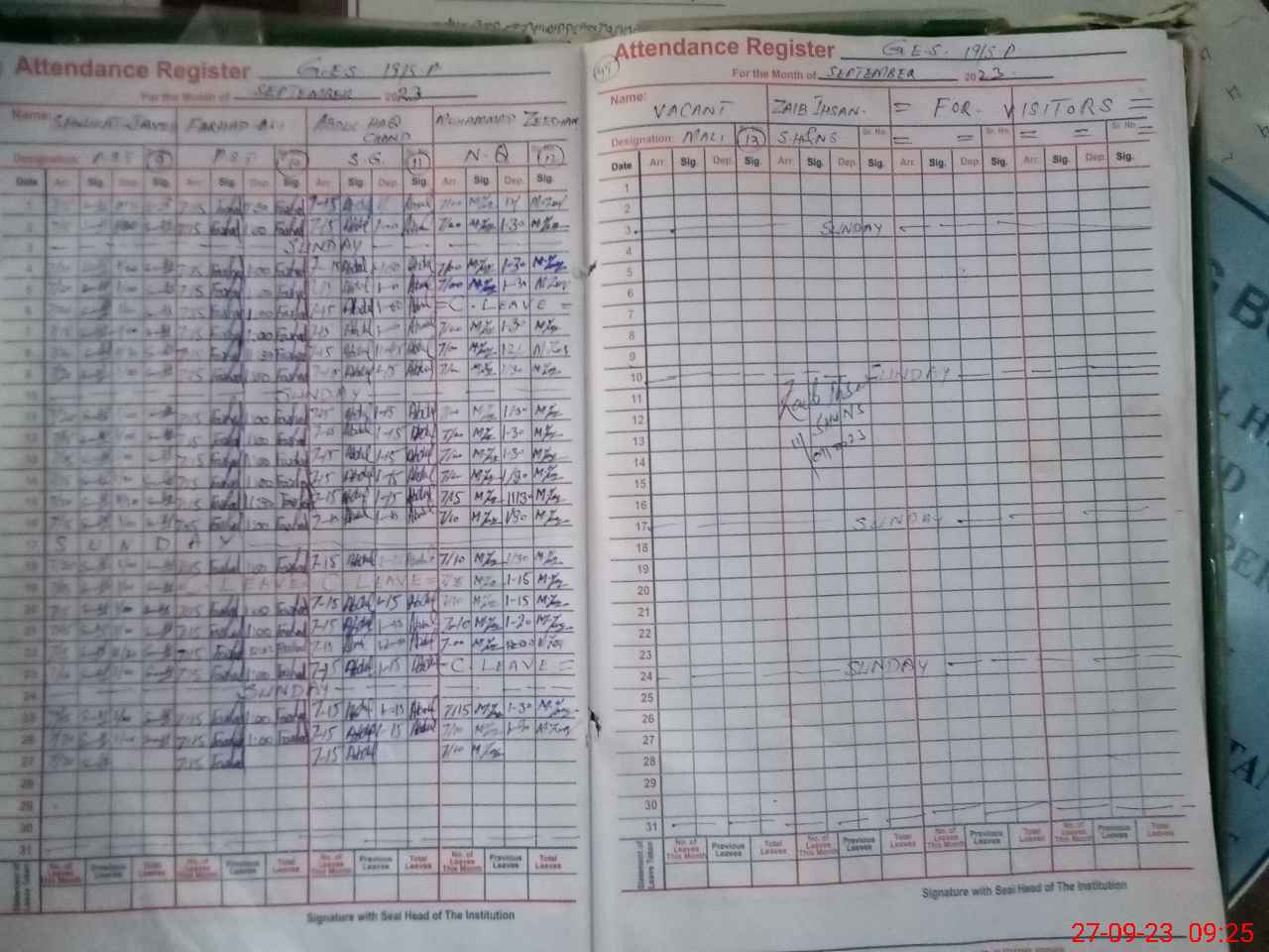 | Name: RI**** AH**** Designation: (School Headmaster's/Headmistress's) SST (GENERAL) Phone/Cell Number: 03**** |