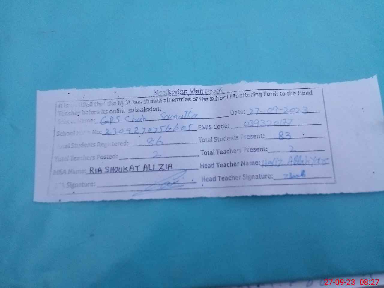 | EMIS Code: 39320177 | Name of School: GPS CHAH SANATTA | |||