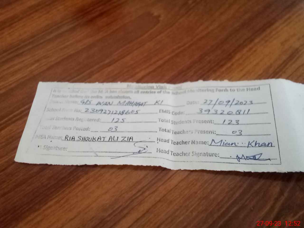 | EMIS Code: 39320811 | Name of School: GPS WAN MAHABAT KI | |||