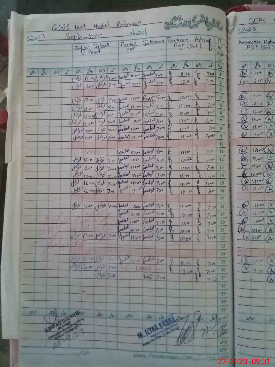 | Monitoring Date: 27-09-2023 | Start Time: 27-09-2023 07:01 AM | End Time: 27-09-2023 09:31 AM | Name of MEA: Mu**** As**** | |