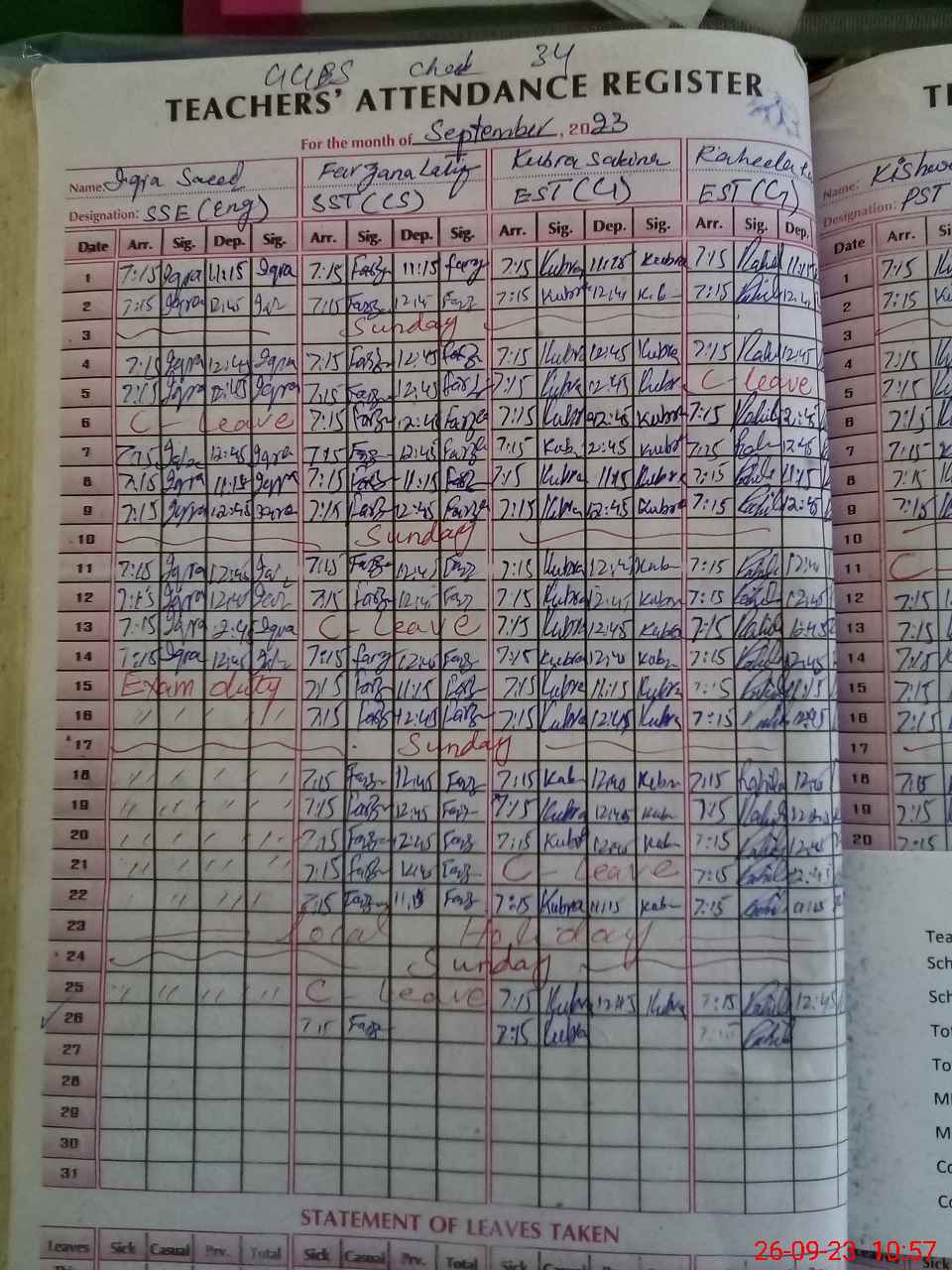 | 35**** | Iq**** Sa**** | 6 | 2 | 0 | 0 | 0 | 0 | 0 | 0 | 0 | 0 | 0 | Exam Duty |