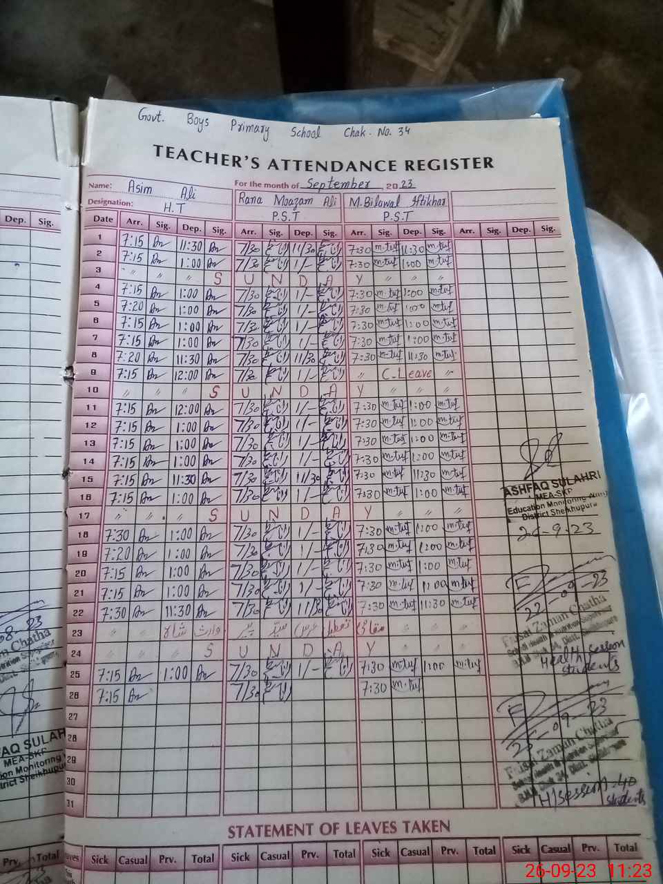 | Name: AS**** AL**** Designation: (School Headmaster's/Headmistress's) ESE Sci Math Phone/Cell Number: 03**** |