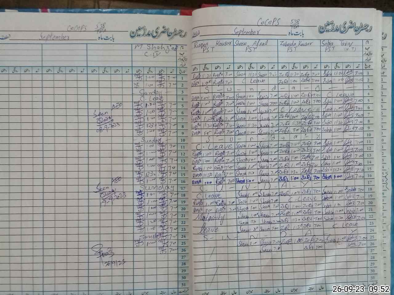 | Leave | Duty | Absent | Maternity | Medical | Ex- Pak |