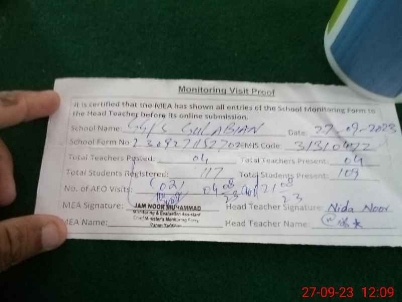 | EMIS Code: 31310472 | Name of School: GGPS GOLABIAN | |||