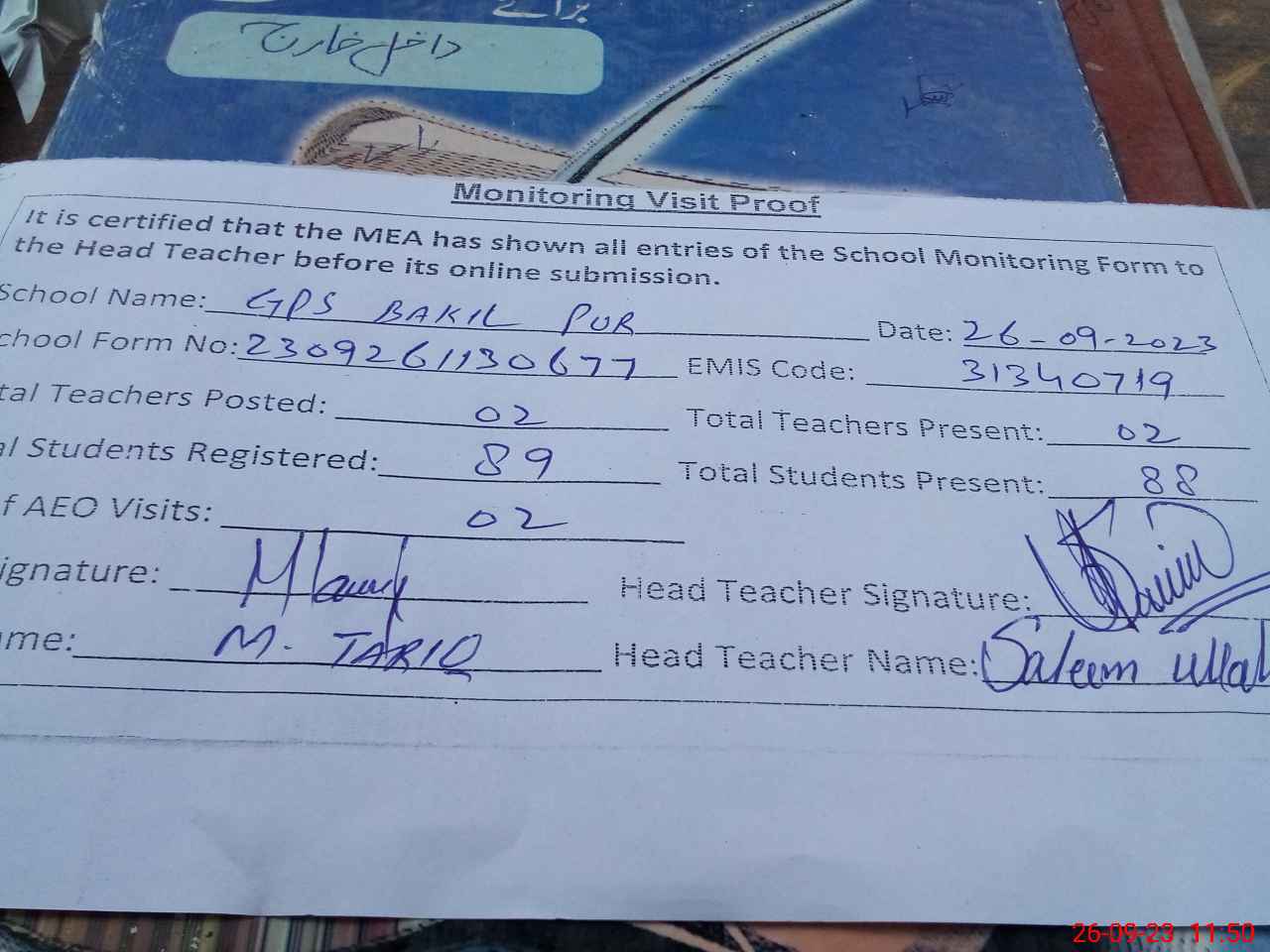 | EMIS Code: 31340719 | Name of School: GPS BAQIL PUR | |||