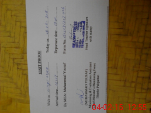 | Attendance Register | Head Teacher | MEA with School | Visit Proof |