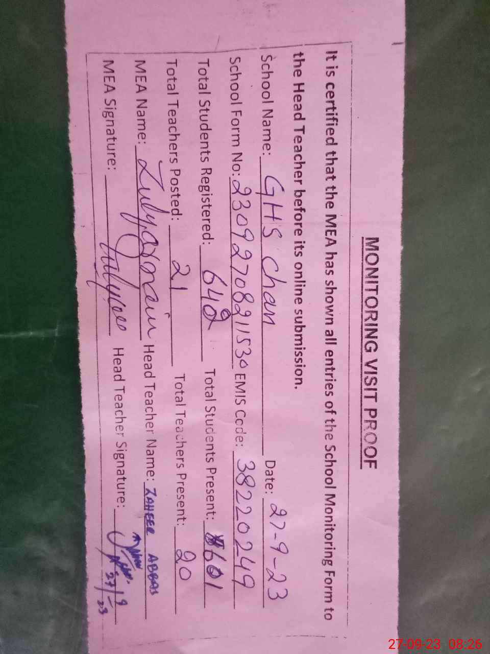| EMIS Code: 38220249 | Name of School: GHS CHAN | |||