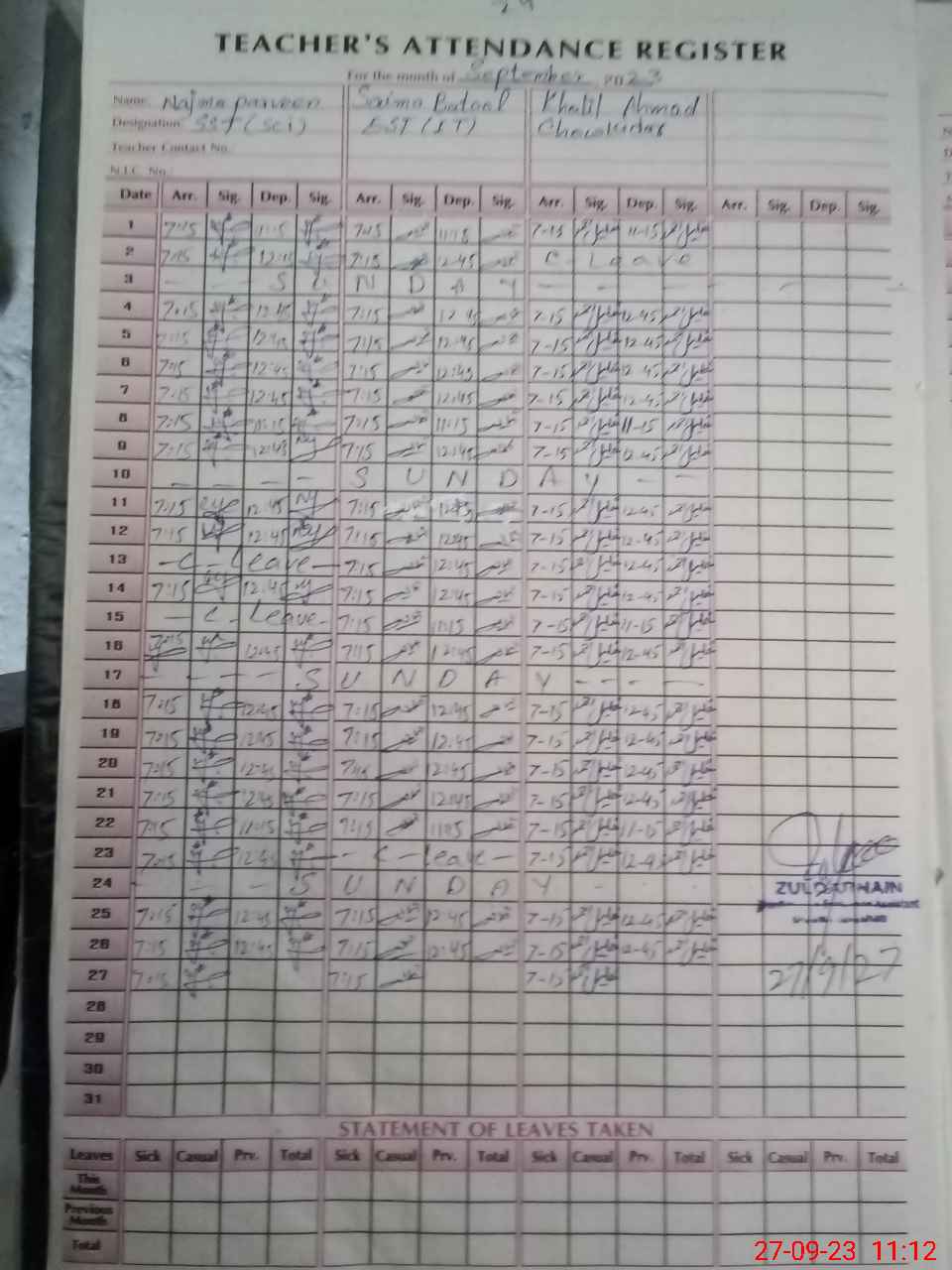 | Name: Na**** Ra**** Designation: (School Headmaster's/Headmistress's) SST Phone/Cell Number: 03**** |