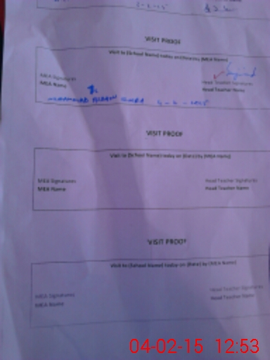 | Attendance Register | Head Teacher | MEA with School | Visit Proof |