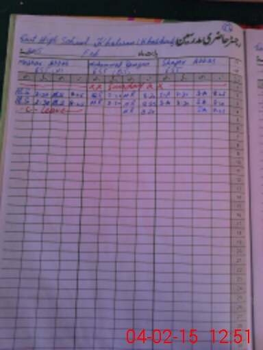 | CNIC | Full Name | Designation | R/C | Absence During Last Calender Month |