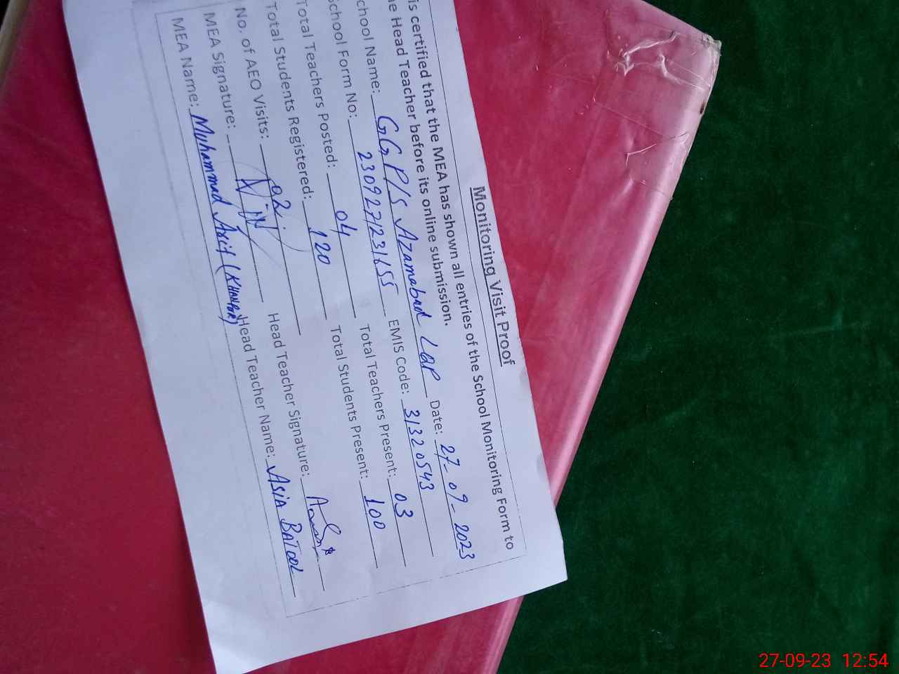 | EMIS Code: 31320543 | Name of School: GGPS AZAM ABAD | |||