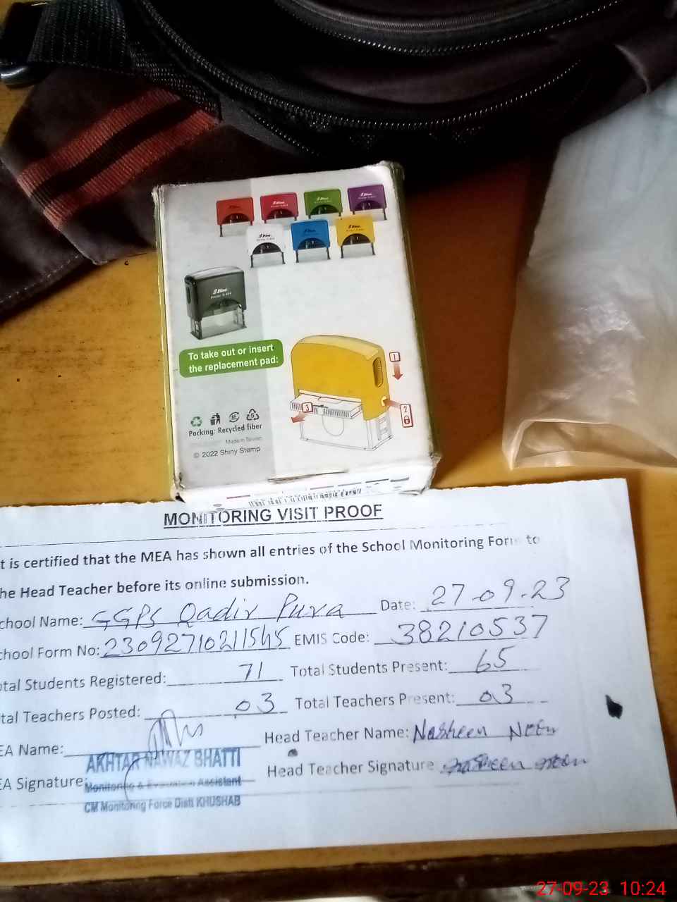 | Attendance Register | Head Teacher | MEA with School | Visit Proof |