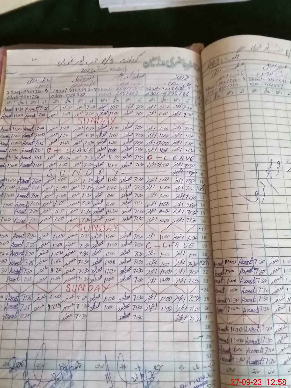 | CNIC | Full Name | Designation | R/C | Absence During Last Calender Month |