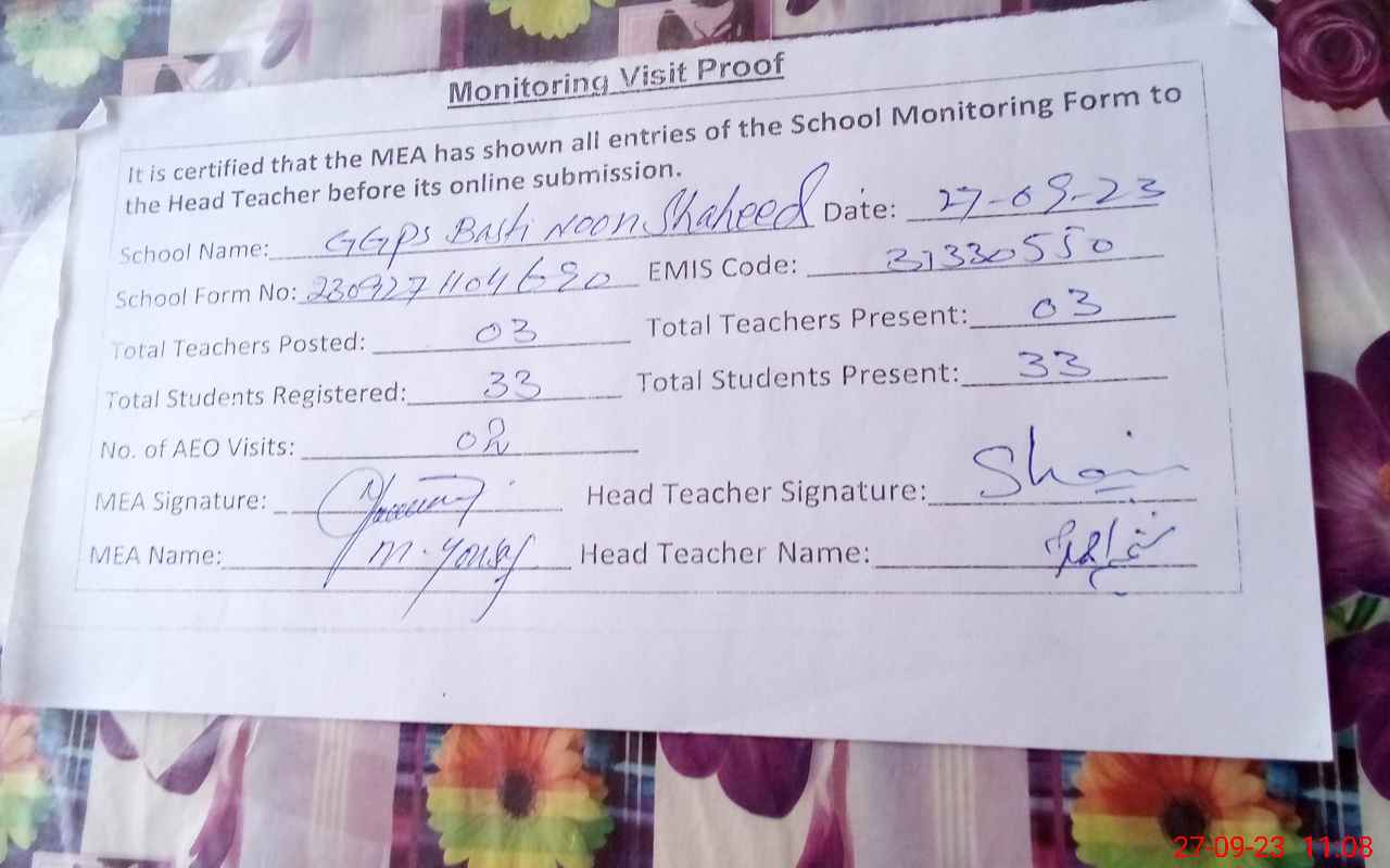 | EMIS Code: 31330550 | Name of School: GGPS BASTI NOON SHAHEED | |||