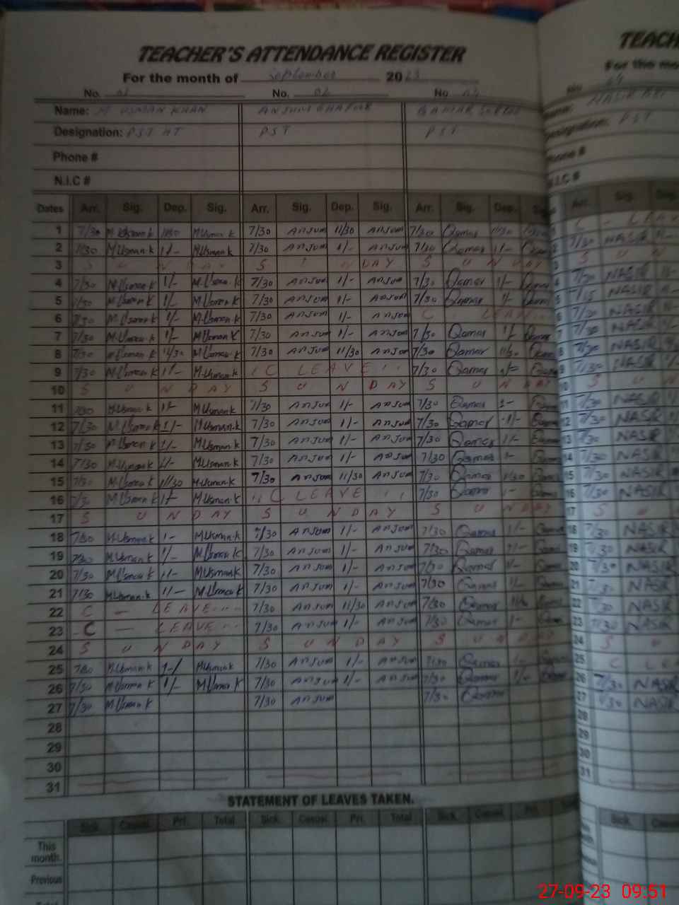 | Name: MUs**** Designation: (School Headmaster's/Headmistress's) PST Phone/Cell Number: 03**** |