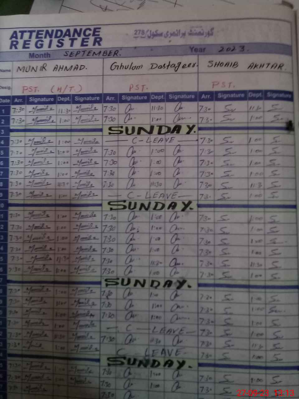 | Name: Um**** Ha**** Designation: (School Headmaster's/Headmistress's) PST Phone/Cell Number: 03**** |