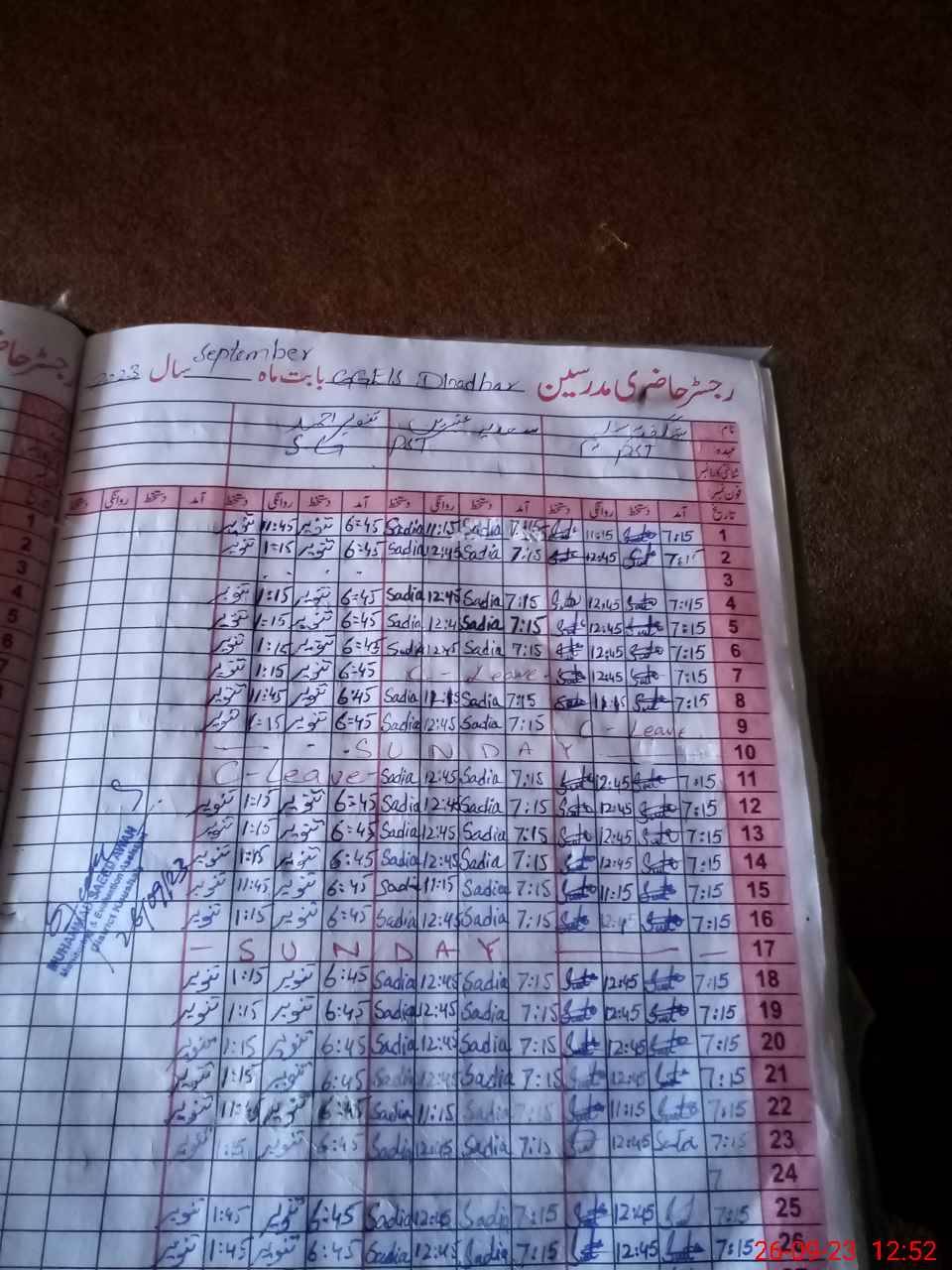 | CNIC | Full Name | Designation | R/C | Absence During Last Calender Month |