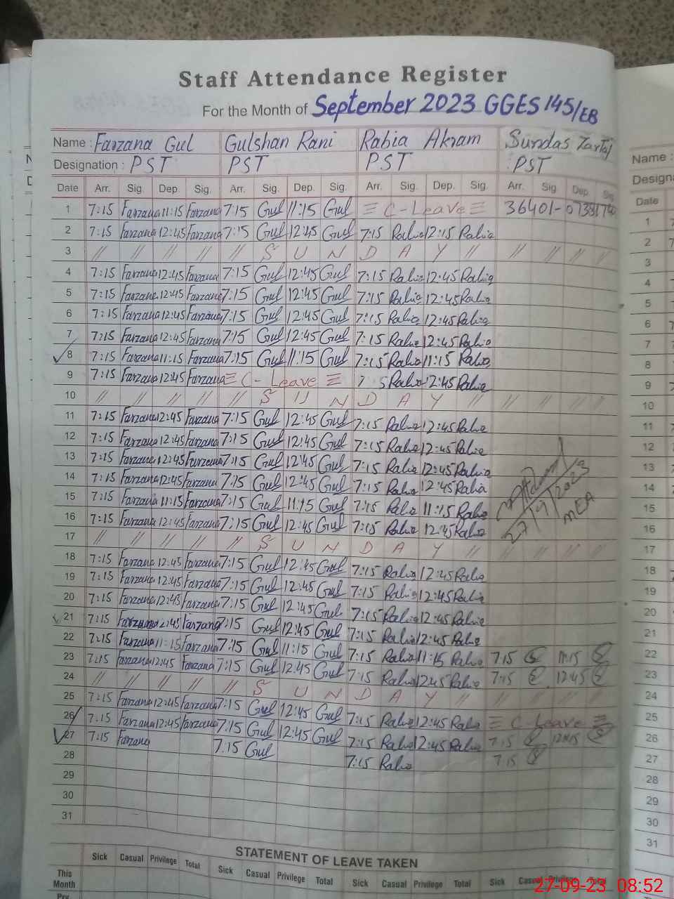 | Name: FO**** RA**** Designation: (School Headmaster's/Headmistress's) S.S.T.(GENERAL) Phone/Cell Number: 03**** |