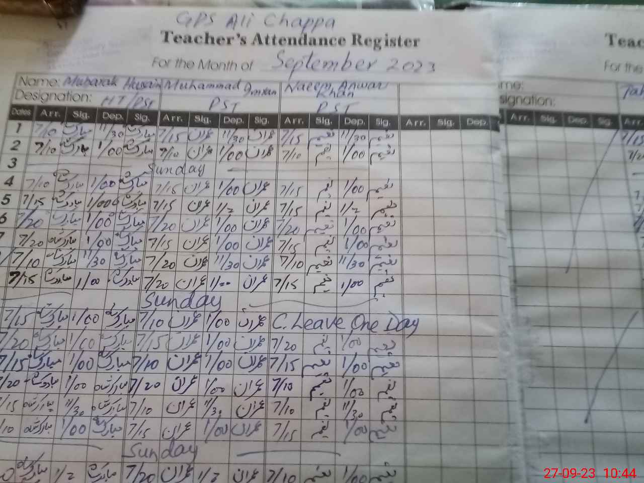 | Name: MU**** HU**** Designation: (School Headmaster's/Headmistress's) PST Phone/Cell Number: 03**** |