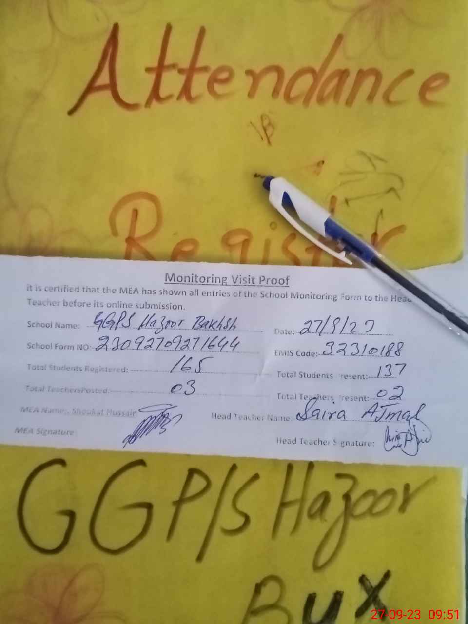 | EMIS Code: 32310188 | Name of School: GGPS HAZOOR BAKHSH | |||