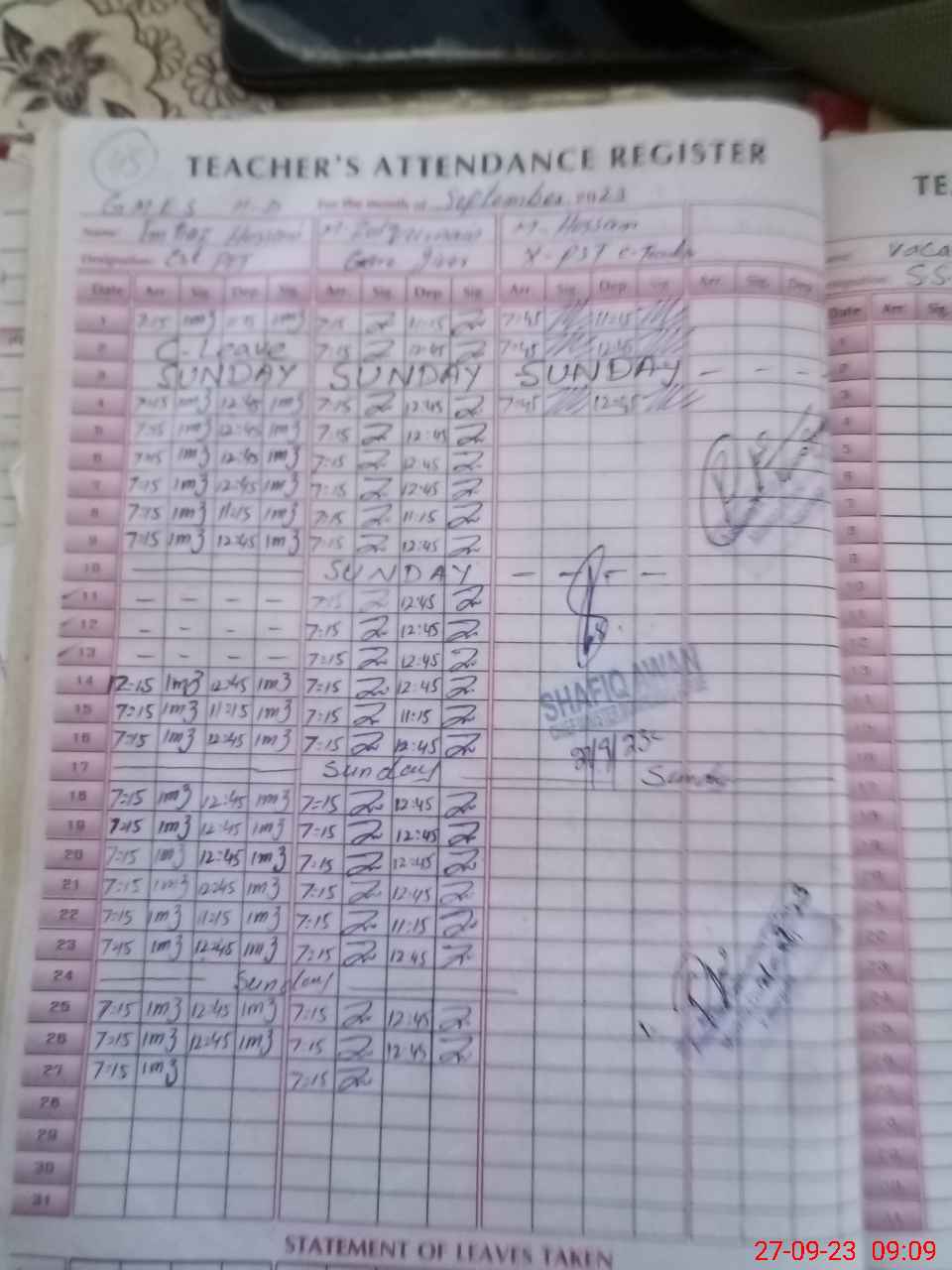 | Name: SH**** IQ**** Designation: (School Headmaster's/Headmistress's) SST Phone/Cell Number: 03**** |