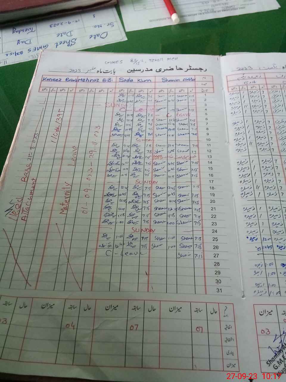| Leave | Duty | Absent | Maternity | Medical | Ex- Pak |