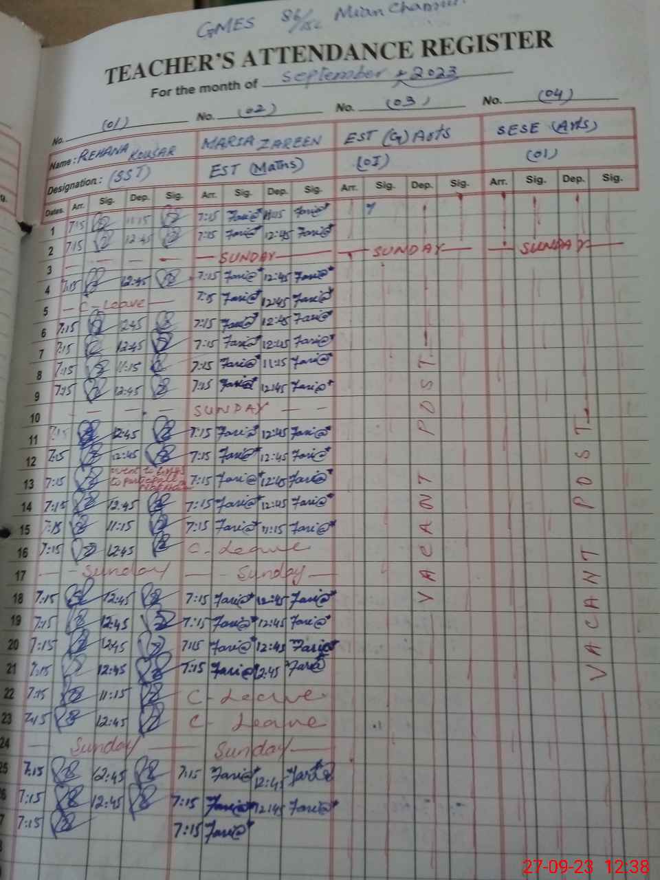 | Monitoring Date: 27-09-2023 | Start Time: 27-09-2023 12:10 PM | End Time: 27-09-2023 12:45 PM | Name of MEA: MU**** SH**** | |