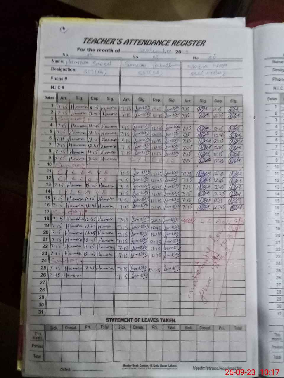 | Name: SA**** CH Designation: (School Headmaster's/Headmistress's) PRINCIPAL Phone/Cell Number: 03**** |