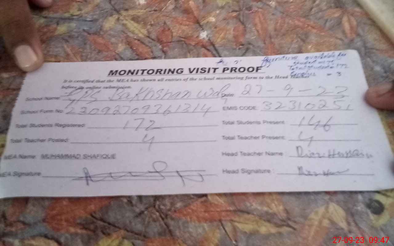 | EMIS Code: 32310251 | Name of School: GPS BAKHSHAN WALA | |||