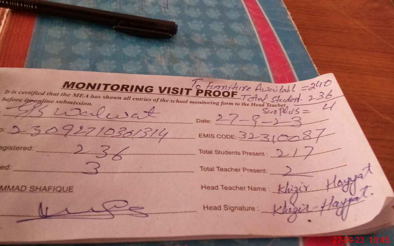 | EMIS Code: 32310087 | Name of School: GPS WALWAT | |||