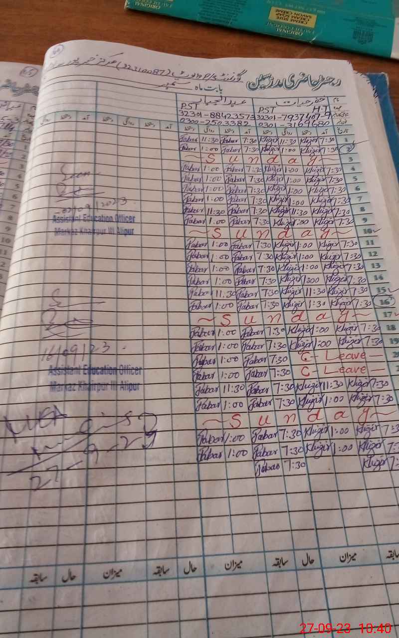| Name: Kh**** Ha**** Designation: (School Headmaster's/Headmistress's) Ese science Phone/Cell Number: 03**** |