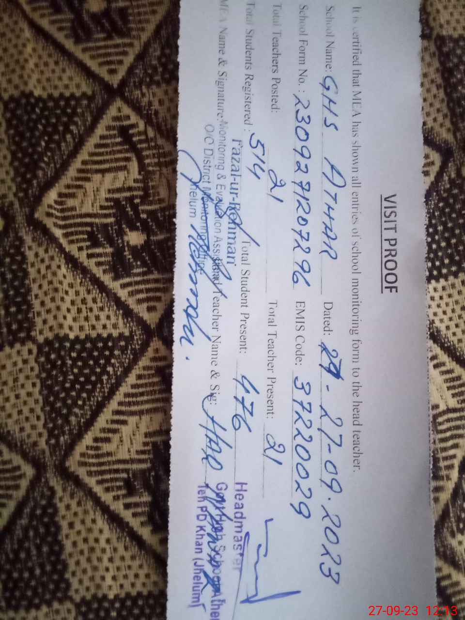 | EMIS Code: 37220029 | Name of School: GHS ATHER | |||